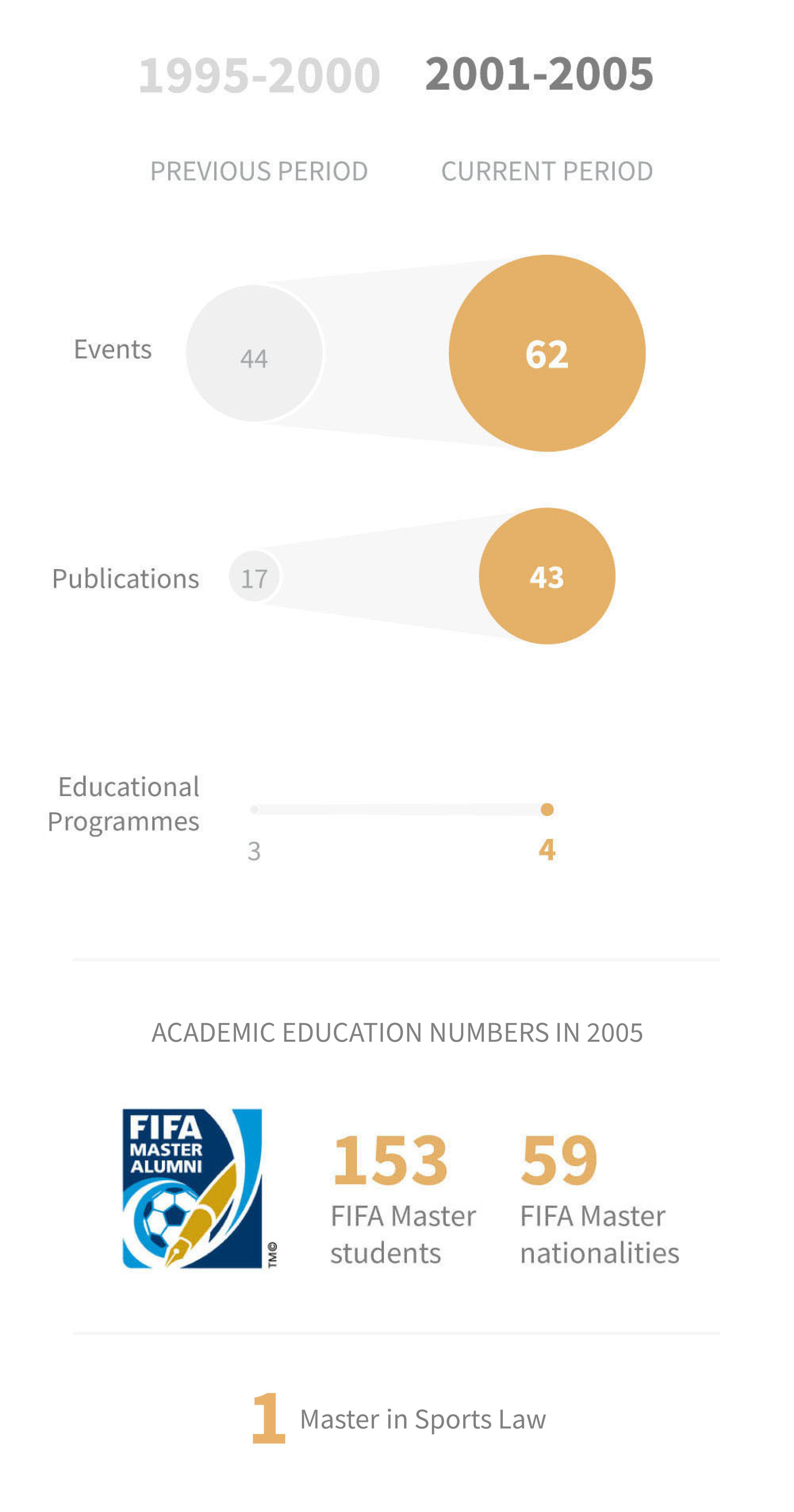2004 marks a paradigm shift in training. Courses for national association leaders still aim to satisfy local training needs, but are now open to a wider audience through renowned universities in strategic regions. This is what will later be known as the FIFA/CIES International Programme in Sports Management.