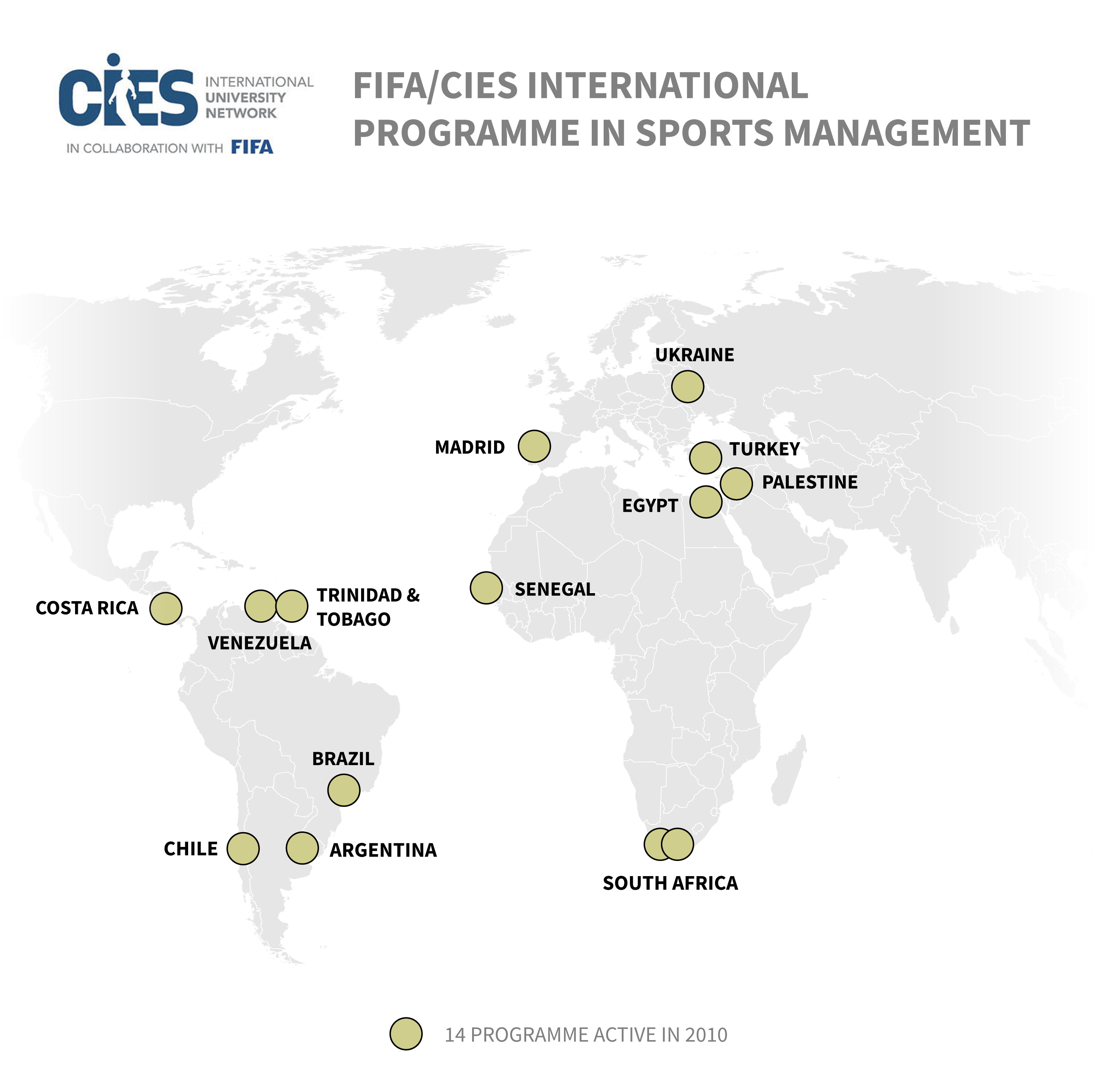 The FIFA/CIES International Programme in Sports Management just keeps growing in its efforts to provide training across the globe. It can now boast of 11 members, from Central and Latin America (Argentina, Chile, Costa Rica, Trinidad and Tobago), Africa (Senegal, 2 in South Africa, Egypt), Eastern Europe (Ukraine) to the Near and Middle East (Turkey and Palestine). Coordinating such an extensive network is both a challenge and a great opportunity.