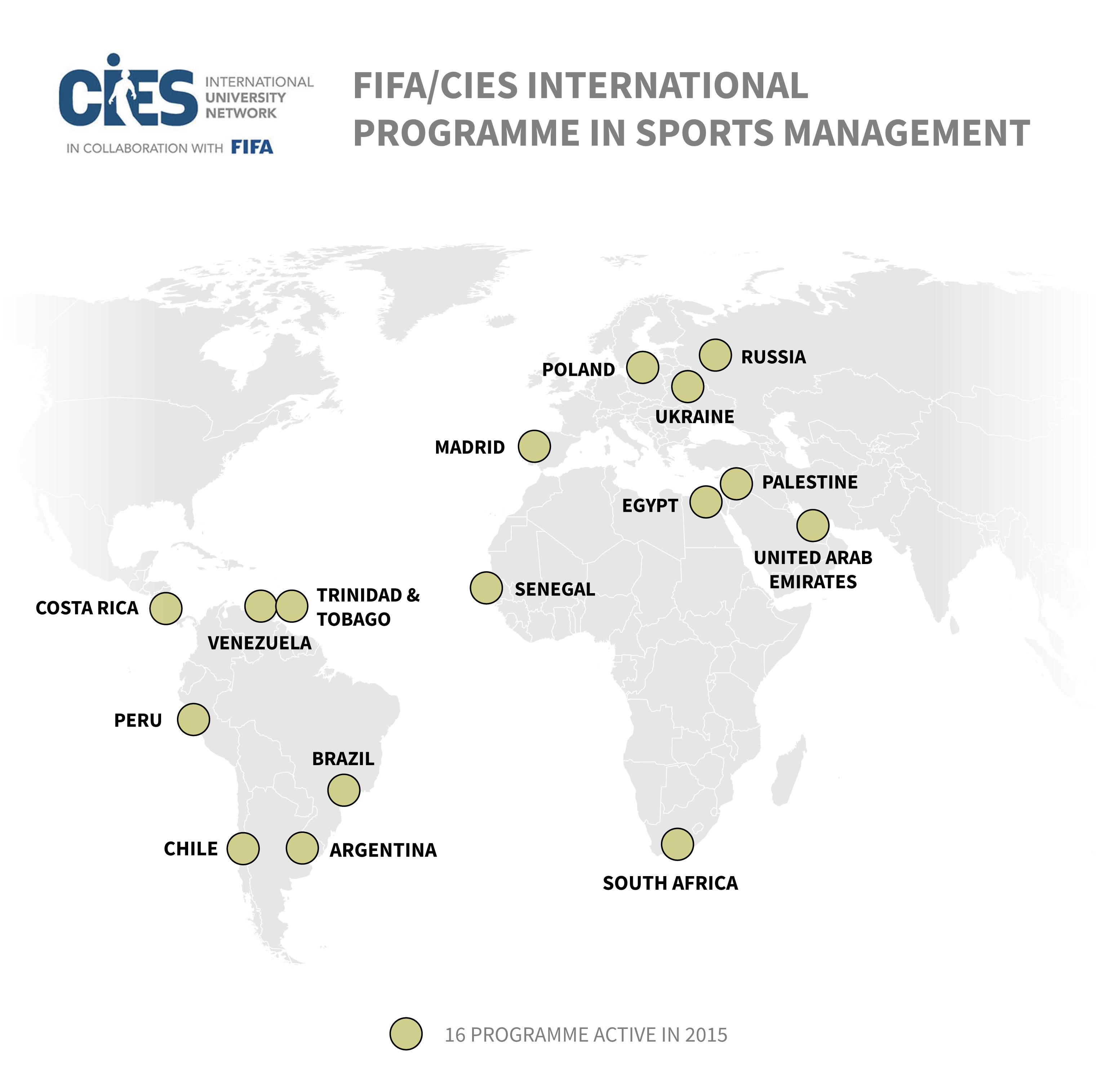 And the FIFA/CIES International Programme in Sports Management widens its outreach even further to Madrid, Caracas and Rio de Janeiro, adding Universidad Rey Juan Carlos (Spain), Universidad Metropolitana (Venezuela) and Fundação Getúlio Vargas (Brazil) to its list of partner universities.