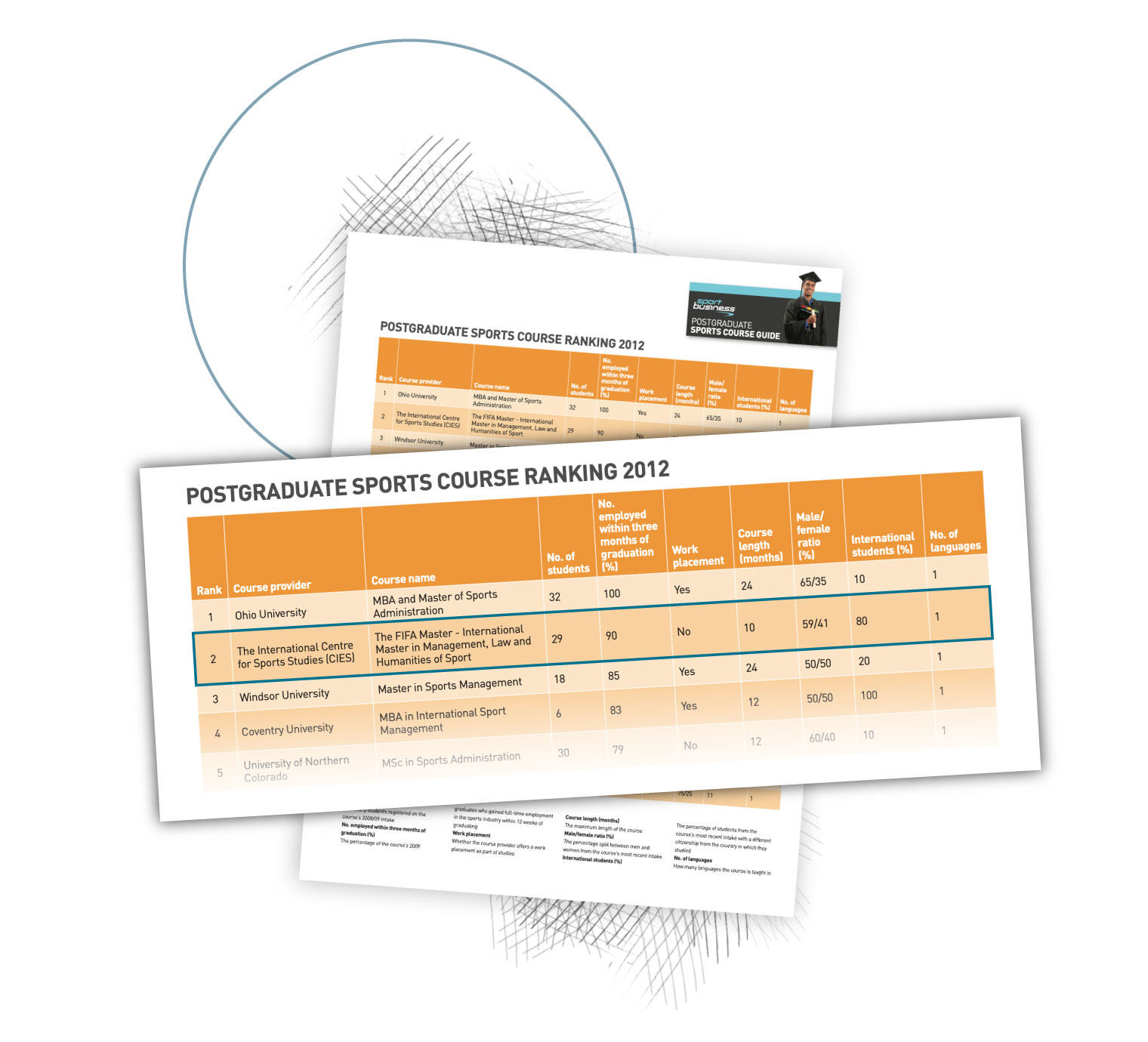 SportBusiness International’s ranking is recognised around the world as the most comprehensive guide to post-graduate sports management courses.